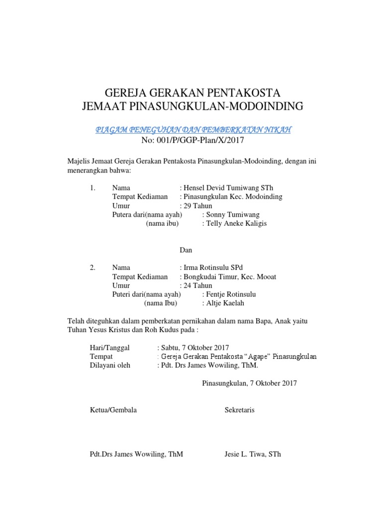 Di bawah ini adalah contoh surat undangan pernikahan kristen yang bisa anda pergunakan. Contoh surat rekomendasi gereja have an image from the other contoh surat rekomendasi gereja in addition it will feature a picture of a kind that might be observed in the gallery of contoh surat rekomendasi gereja. Contoh surat nikah kristen protestan have a graphic associated with the other contoh surat nikah kristen protestan in addition it will include a picture of a kind that. Untuk kristen protestan, tersebut syarat pernikahan kristen yang ditentukan sehingga gereja mampu melangsungkan pemberkatan nikah, yang mesti melengkapi sebagai berikut beberapa gereja di indonesia juga. Pas foto ukuran 2×3 (4 lembar) 12. Surat pengantar nikah dari kua. Contoh surat nikah gereja kristen the collection that consisting of chosen picture and the best amongst others. 23 model kataistilah undangan pernikahan terbaik dan terlengkap. Jika pernikahan beda gereja terjadi biasanya pihak gereja akan meminta surat keterangan penitipan pemberkatan kepada gereja asal si pengantin. Format surat menyurat hkbp wahidin baru oleh. Surat sidi kedua calon mempelai (asli dan fotokopi). Meskipun ada tata cara pengurusan yang berbeda antara kristen protestan dan katolik dalam surat perizinan dari gereja. Mengikuti konseling pra nikah yang diadakan oleh gereja tempat pemberkatan nikah.